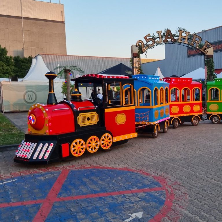 Die wunderschöne und topmoderne "Bimmelbahn" ist ein äußerst beliebtes und farbenfrohes Highlight für jedes Kinder- und Familienfest!
